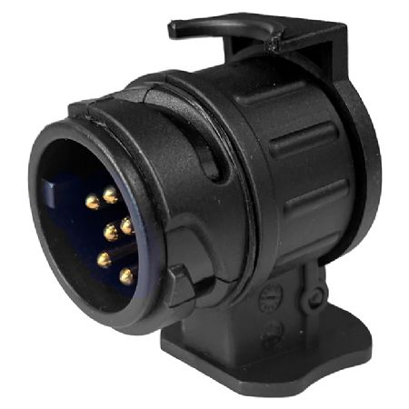 Praktisk adapterstik til biler med 13-polet anhængerudtag, som gør det muligt at tilslutte trailer, campingvogn eller cykelholder med 7-polet stik. Adapteren omdanner nemt og hurtigt bilens 13-polet udgang til en standard 7-polet tilkobling.