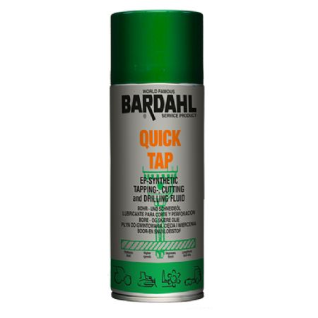 Bardahl Quick Tap skæreolie 400 ml. Bardahls Quick Tap er en ikke-opløselig, syntetisk baseret skæreolie udviklet til bearbejdning af jern, jernlegeringer, nikkel, kobber, kobber-legeringer og magnesium. For høj ydeevne ved gevindskæring, skæring, fræsning og boring i metal, fra legeringer til rustfrit stål. Quick Tap giver en hurtigere og nemmere skæring af hårde eller bløde metaller.