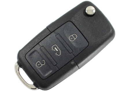 Original VW Crafter flip bilnøgle med fjernbetjening og 3 knapper (Lås, Lås op samt skydedør).