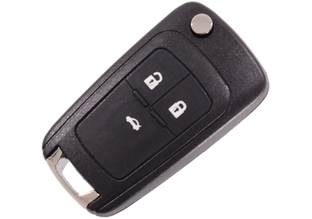 Komplet bilnøgle til Opel med fjernbetjening og 3 knapper (Lås, Lås op og bagaberum).