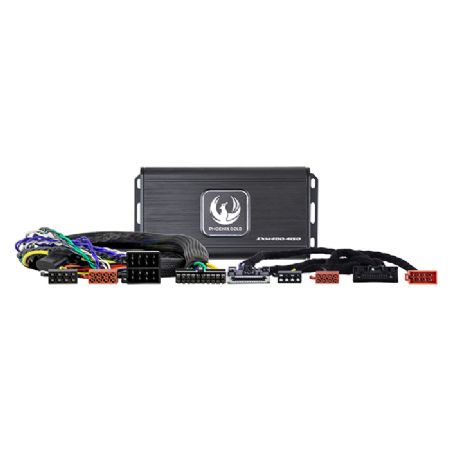 Systemets hjerte er Phoenix Gold ZXM400.4ISO, en kompakt 4-kanals Class D forstærker med 4 x 60 watt RMS. Den leverer væsentligt mere kontrol og dynamik end standardanlægget.